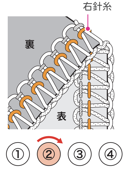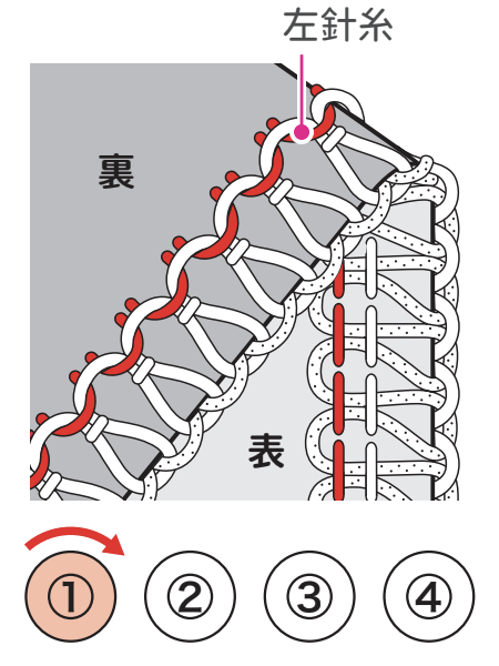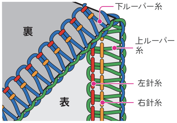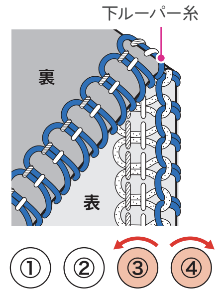 下ルーパー糸が表側に巻き込む場合