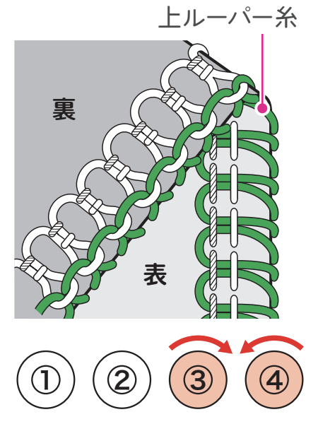 上ルーパー糸が裏側に巻き込む場合