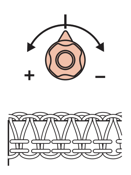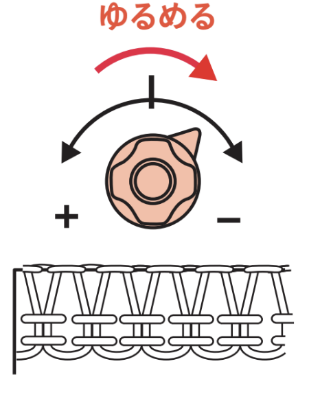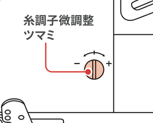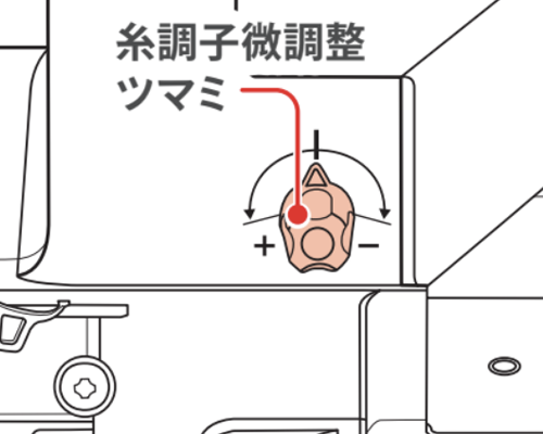 自動糸調子が搭載されているミシンでは、糸調子を自動で調整しますが、生地や糸によっては、糸調子微調整ツマミを回して縫い目を整えた方が良い場合があります。ダイヤルを調整することで糸調子を微調整することができます。