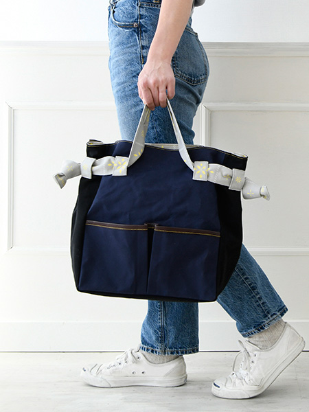 厚地も革も縫えるミシン “極” を使って、革パイピングのポケットトートをつくりました。