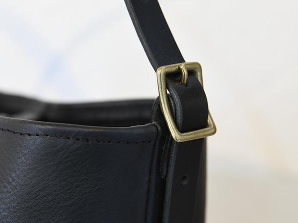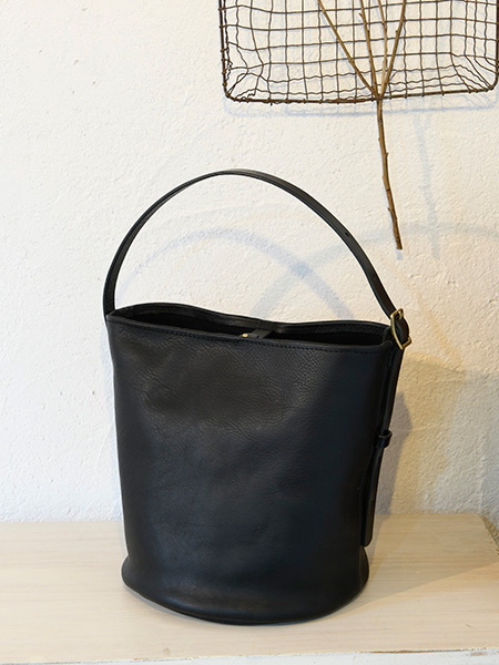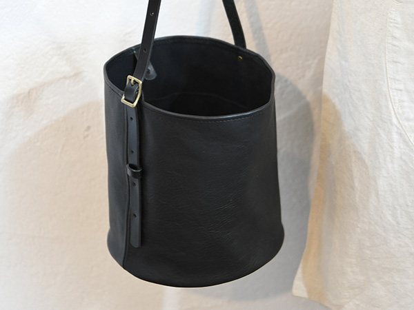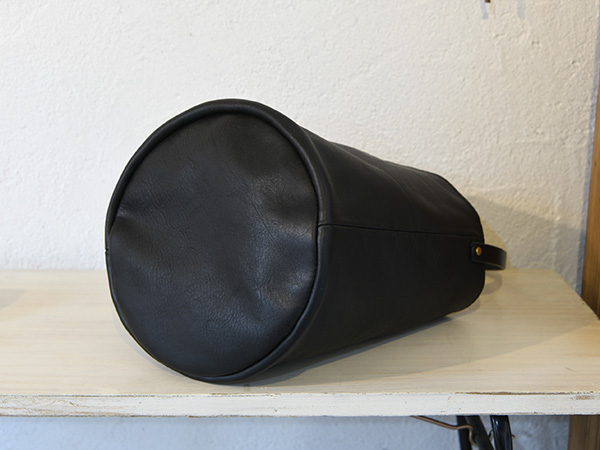 本革をぜいたくに使った丸底のバケツバッグを作りました。