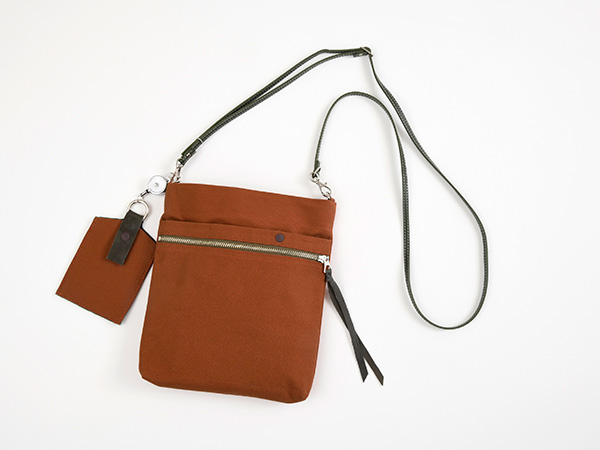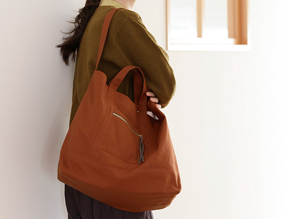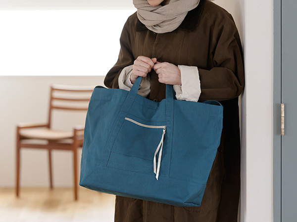 トートと共布で仕立てたポシェットは市販のショルダーひもと組み合わせて使用。