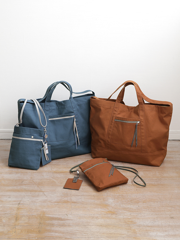 11号帆布を使った2wayワイドトートバッグ・スマートポシェット・パスケースのセット。