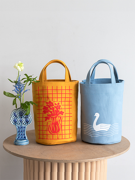 自立するバッグはお出かけだけでなく、インテリアの小物入れとしても重宝します。