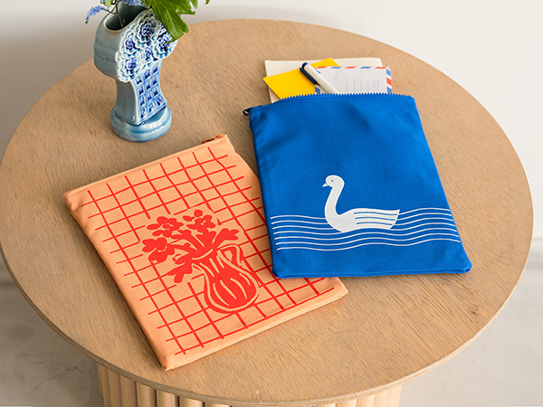縫いやすい厚さの11号帆布を使ったフラットなポーチ。