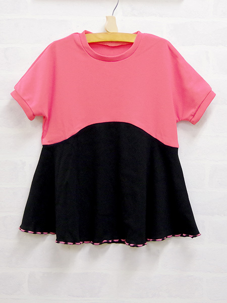 袖口と裾をウェーブロックで仕上げるとさらにかわいく簡単に仕上げることができます。