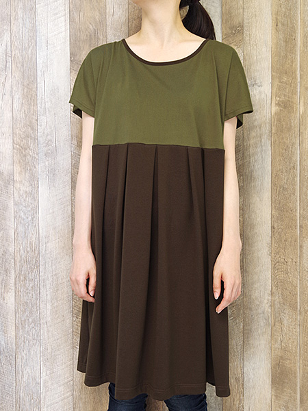 タックのドレープがきれいな、ゆったり着心地の良い一枚です。アースカラーの天竺でつくりました。