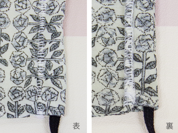 紐通し部分はロックミシンのテクニック【3本糸ロックの平縫い】で仕上げます。