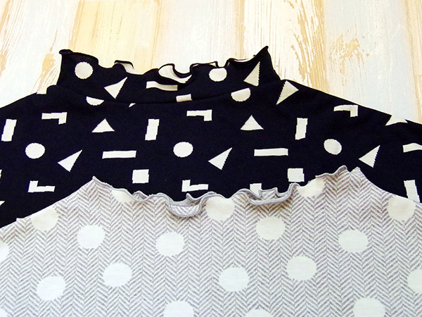 リバーシブルジャカードニットを使った、4本糸ロックミシン1台でつくれるプルオーバーです。
