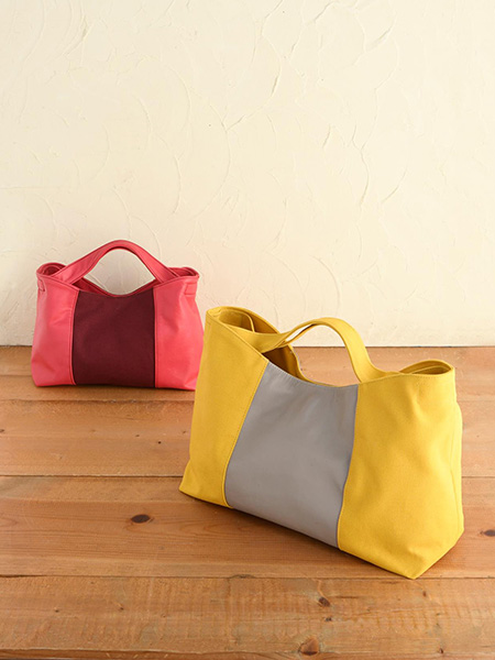 A4サイズが入る普段使いに便利なLサイズ(帆布メイン)と、小ぶりながらも荷物がしっかり入るMサイズ(革メイン)の2サイズをご用意。
