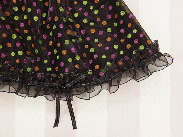 肩にはギャザーがたっぷり入ったフリルで可愛さアップ