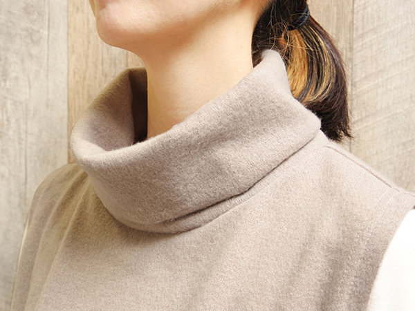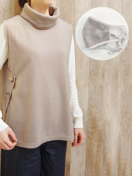 触り心地の良い起毛加工のニットを使って、タートルネックのベストとマスクを作りました。