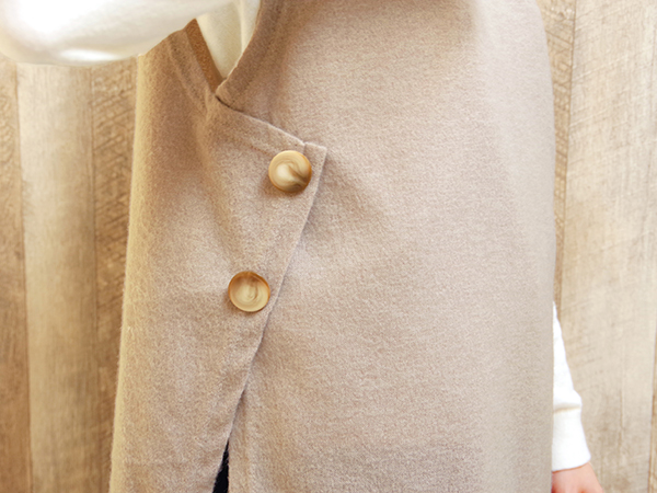 ベストは布端をカバーステッチで始末した後に脇を縫い留めて、飾りボタンを付けました。