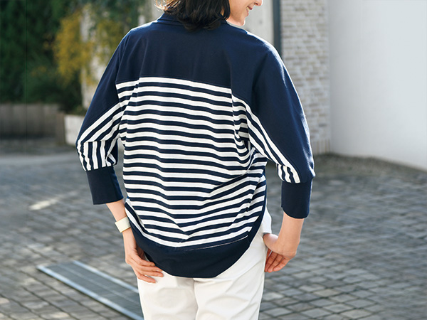【生地名】30/1先染めSZ天竺ボーダー 【使用色】ネイビー・レッド