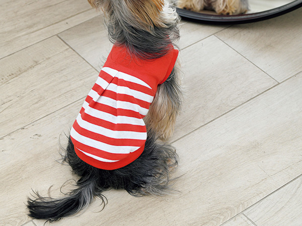 犬服は背中のタックと丸みのあるシルエットがポイントです。