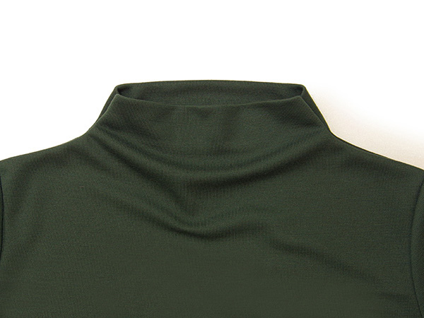 首に沿って立ち上がるボトルネックデザインで首元の冷え対策もばっちりです。