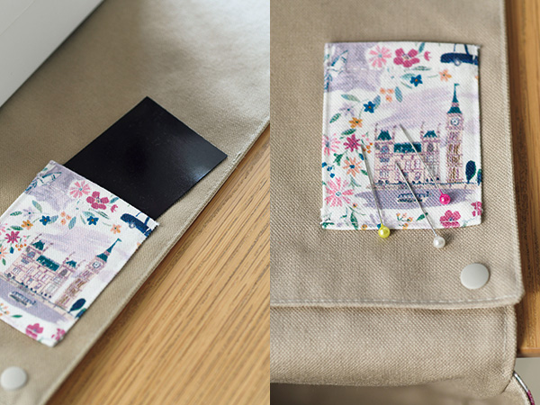 本体のポケットにはマグネットシートを入れて、針や押えの一時置き場に。
