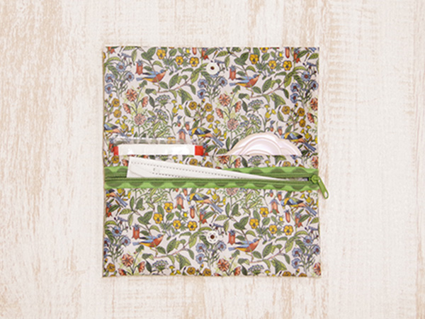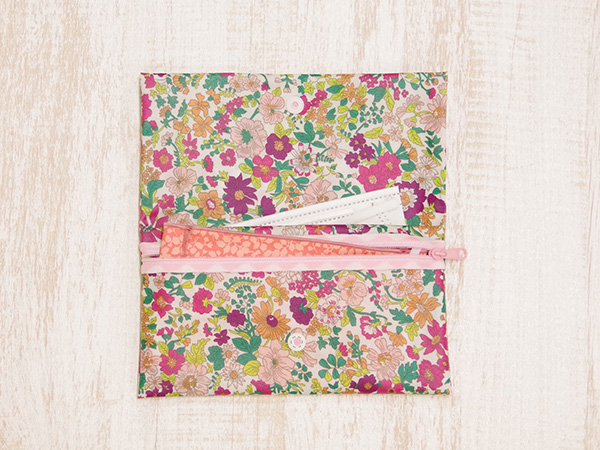 ファスナーのないポケットは直線ミシンでステッチを入れて仕切りを作ることもできます。