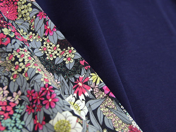 袖口からさりげなくのぞくリバティプリントは、お好みで折り返して着ても素敵です。