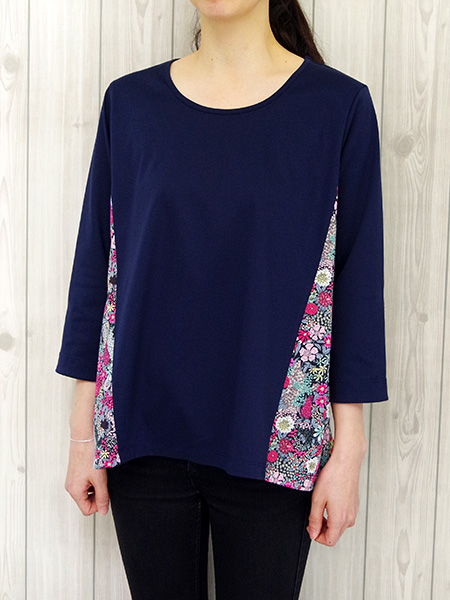 両サイドのフラワープリントが華やかなソフトAラインシルエットのプルオーバー。