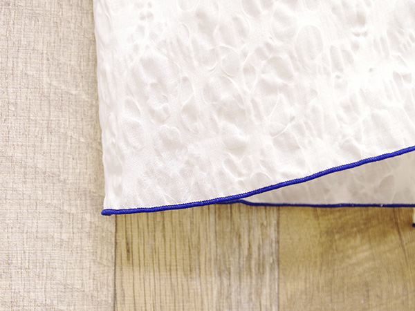 巻きロックは生地と同色にせず、ネイビーにすることで作品が引き締まりました。
