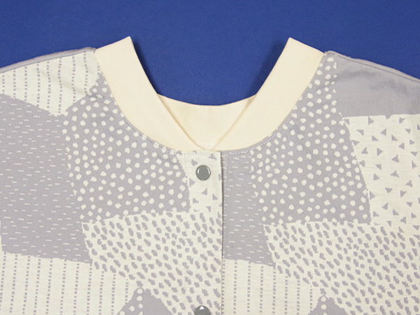 前端はカバーステッチで仕上げてグレーのホックボタンを付けました