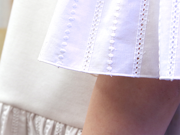 裾フリルはギャザー寄せと縫い合わせ、縁かがりが同時に出来る
