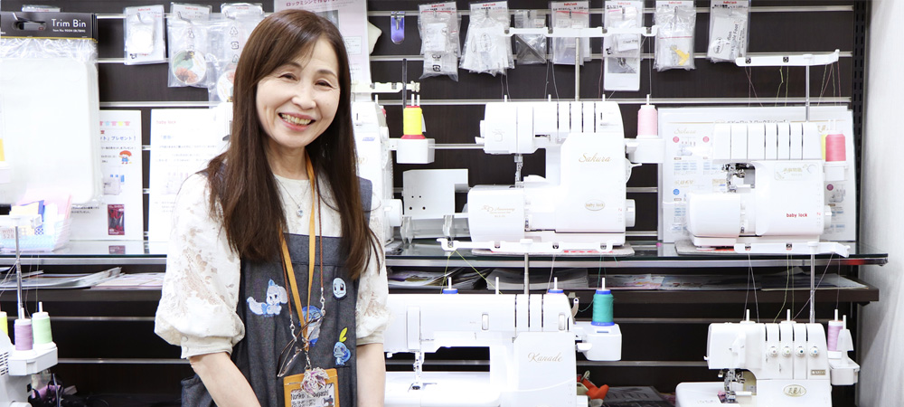 日々たくさんの機種を取り扱うミシン専門店ならではの目線から見た『ベビーロック』を語ってもらうべく、「ミシンショップタケダ」店舗統括マネージャーの小林則子さんにインタビューしてきました!