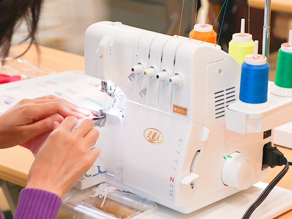 ベビーロック・スタジオでは、初心者からプロまで幅広く学べるワークショップを開催。使い方の基礎から応用まで、実際に手を動かしながら習得できる、ものづくりを深める場を提供している。