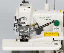 「ベビースクイ」は、スカートやパンツなどの裾まつりを手早く、きれいに、そして確実に行うための、職業用すくい縫い専用ミシンです。
