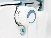 送り目(縫い目長さ)は、最小0.75mm。しかもダイヤルひとつで普通ロックへも巻きロックへも素早く変更できます。