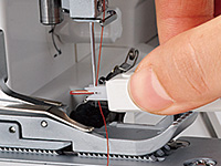 専用の糸通し具(付属)を使えば、小さな針穴に、サッと糸を通すことができます。