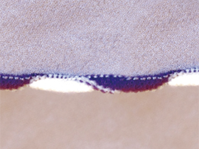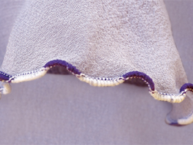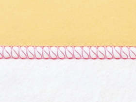 独自の機構により縫い目に美しい波状の模様を演出するウェーブロック機能。ラメ糸やウーリー糸、飾り糸、その他さまざまな糸を使うことによって、ただの縁かがりが自己主張をはじめます。あなたの想像力でさらにmake upを。