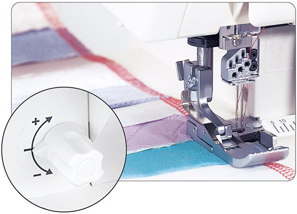 かがり幅は最大7.5mm。素材や好みに応じて簡単に調節可能です。(オーバーロックのみ)