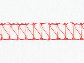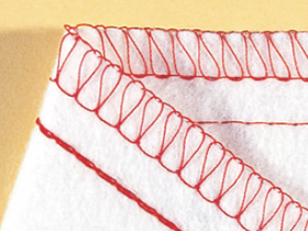 下糸(裏側)が鎖状になっているため、スラックスの脇や股下の縫い合わせに最適。 襟ぐりの飾りステッチとしても活躍します。