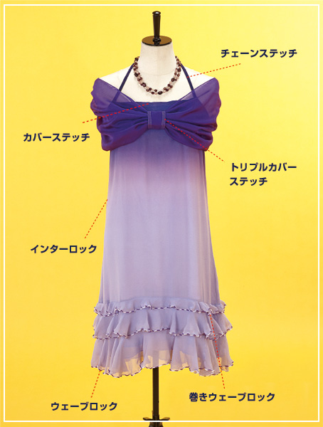 ギャザー寄せやリブ付けも簡単。他にも袖山のいせ込み、スカートのヘムなど、使い方をいろいろに楽しんで。