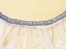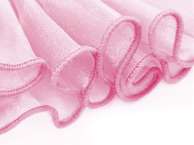 かがり幅が1.5㎜程度に縫えるので、薄物の縁かがりやハンカチ、スカーフづくりに最適。コサージュやフリルにも。