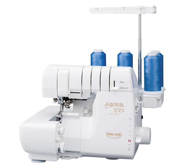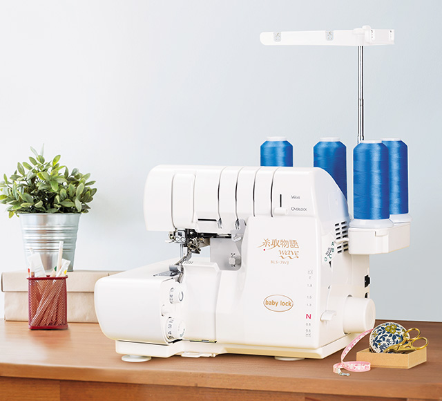 縁かがりと同時にゴムテープを簡単に縫い込むことができます。また、巻きロックに設定し、テグスやフリーウェーブを入れることもできます。
