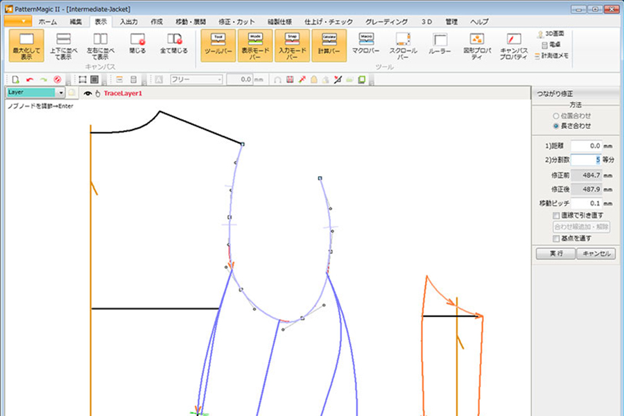 アパレルパターン(型紙)をパソコン上で作図するためのCADソフトウェアと、作図したデータを実寸でプリントおよびカットするためのプロッターです。