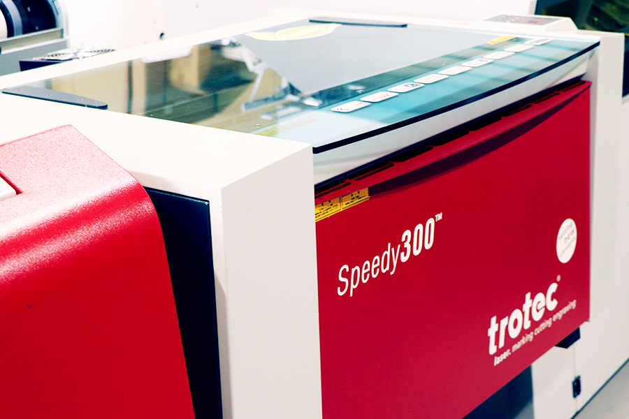 炭酸ガス(CO2)レーザーを使って、さまざまな素材のカット、彫刻ならびにマーキングを行うための機器です。