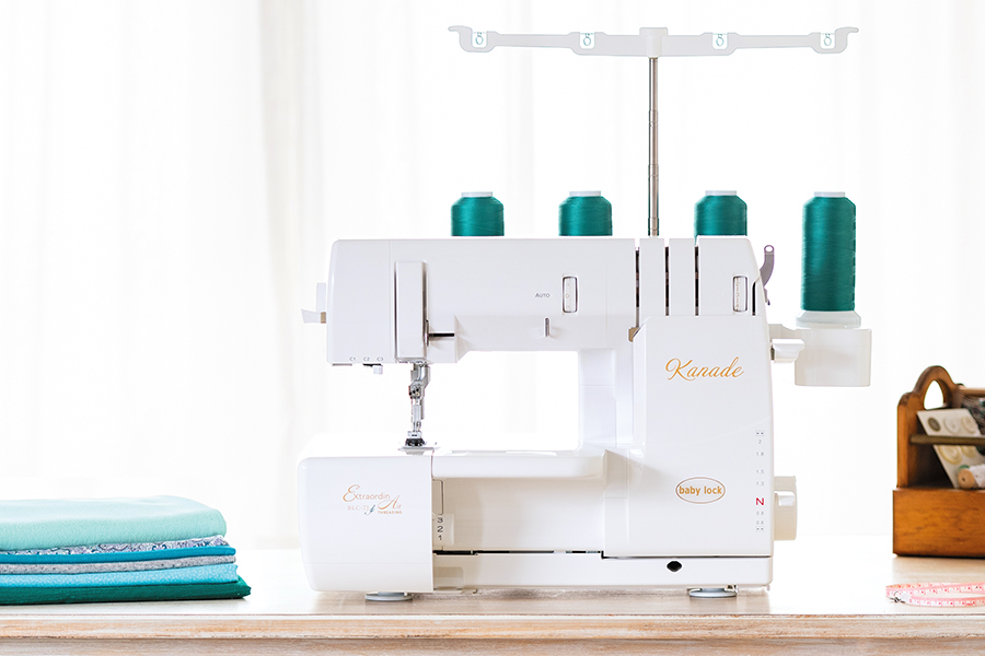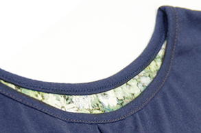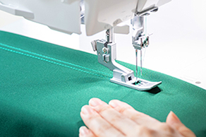 カットソーの裾や袖口の縫製、衿ぐりのパイピング始末、バッグ、ホームテキスタイル等への飾り縫いにつかうカバーステッチ専用ミシンです。ロックミシンとの組み合わせで、カットソーを既製品と同じように仕上げることができます。