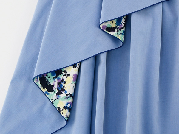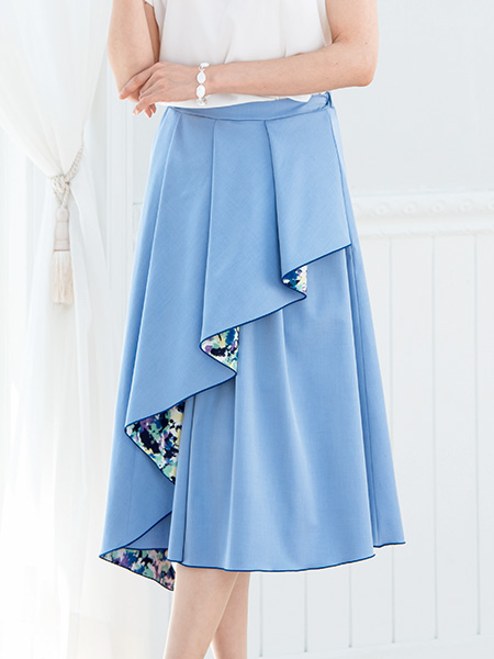 ドレープから覗く花柄が女性らしい、おしゃれなデザインのスカートをつくりました。
