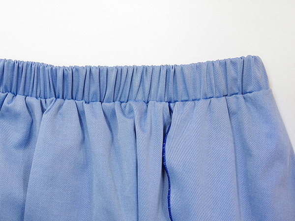 ドレープの端や裾に変形巻きロック、脇などはすべてオーバーロックで縫い合わせた、ロックミシン1台でつくれる一着です。