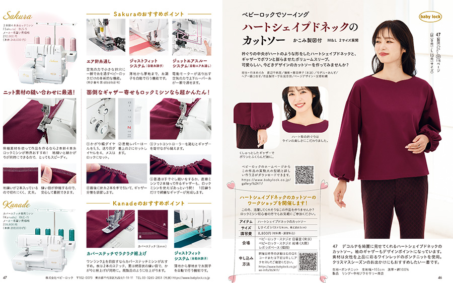 「ベビーロックでソーイング ハートシェイプドネックのカットソー」