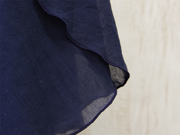 程よい透け感の袖は生地端に巻きロックをかけてフリルのような仕上がりに。
