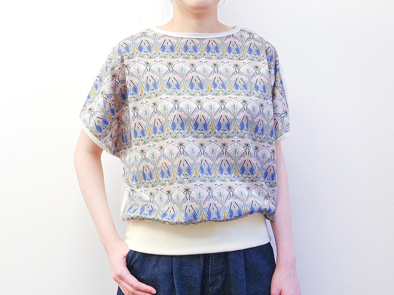 ベビーロックのSakuraとKanadeを使って「リバティプリントのドルマンスリーブ」を作ります。 ソーイング好きにとって憧れの素材、世界中のファンを魅了するリバティプリントの国産シェラトンジャージ「Ianthe (アイアンシ) 」を使用します。 アイアンシは、ギリシャ語で「スミレや紫の小さな花」を意味します。 ゆったりとしたシルエットが魅力のドルマンスリーブ。ドルマンスリーブは袖つけが無いため、ロックミシンが初めての方でも簡単に縫うことができます。 また、カバーステッチミシン専用の三つ折バインダーを使えば、衿と袖口の縁どりがあっという間に仕上がります。 ご希望の