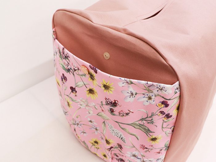 通常のポケットは共布のスモークピンクの生地をお使いいただきますが、お好みで下記のリバティプリント(11号帆布)からお選びいただくこともできます。(オプション+1,320円)