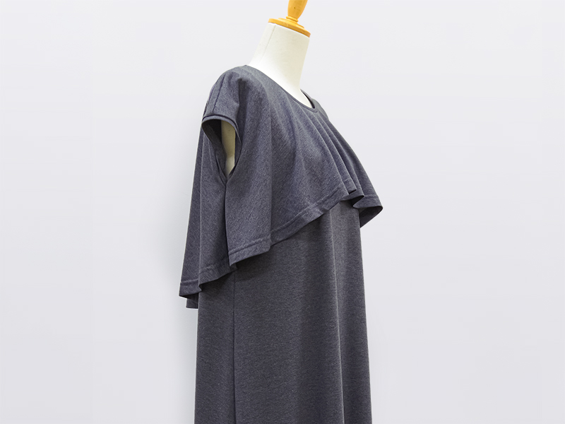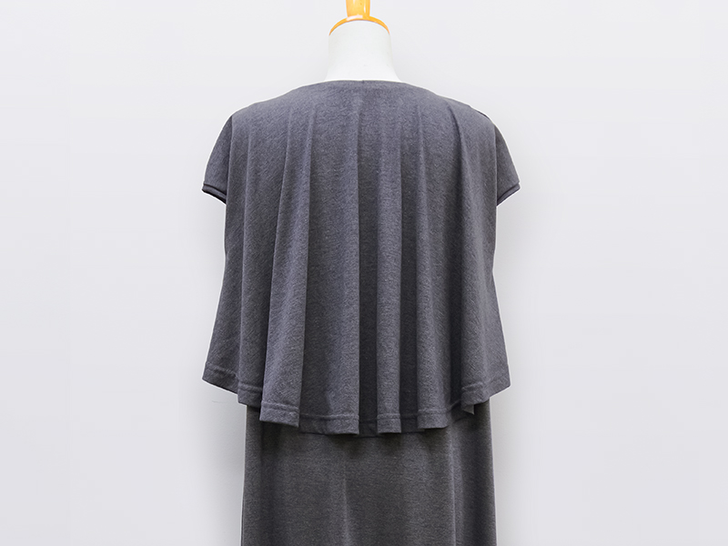 前後差のあるフレアシルエットのプルオーバーを重ねたAラインのワンピース。