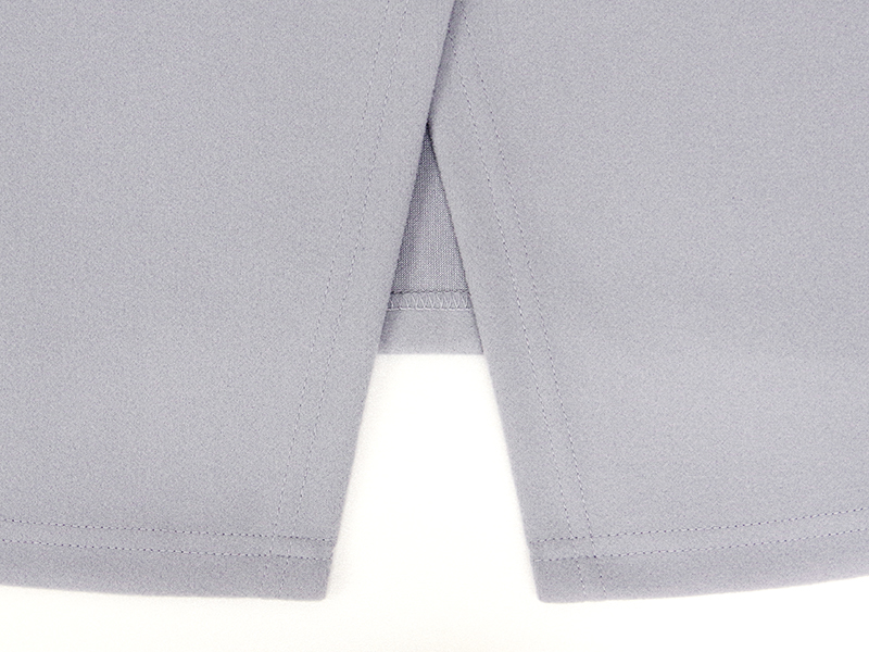 ロックミシン「Sakura」で縫い合わせと端の始末を同時に行い、あっという間に仕立てることができます。ベンツ、袖口、裾は、生地端を折り上げてカバーステッチミシン「Kanade」で既製品のような仕上がりに。
