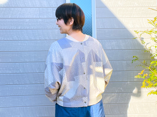 2時間半であっというまにカーディガンが完成しますよ。ご希望の方は型紙も購入できるのでおうちでお好みの生地を使って同じ作品が作れます!生地はカット済みのものをご用意。初めてのかたにも分かりやすくご説明いたします。